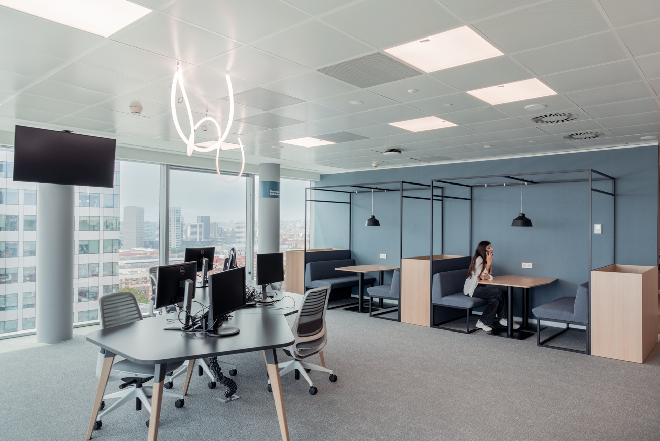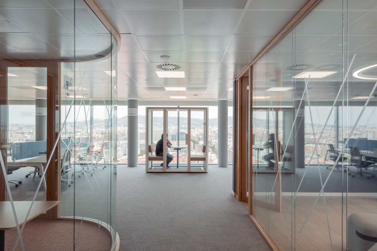 Proyecto de reacondicionamiento a cargo de la empresa 3G Office, para un edificio de oficinas en el centro de Barcelona con certificación BREEAM NC y WELL, que ha conseguido la certificación BREEAM ES Acondicionamiento nivel Excelente.